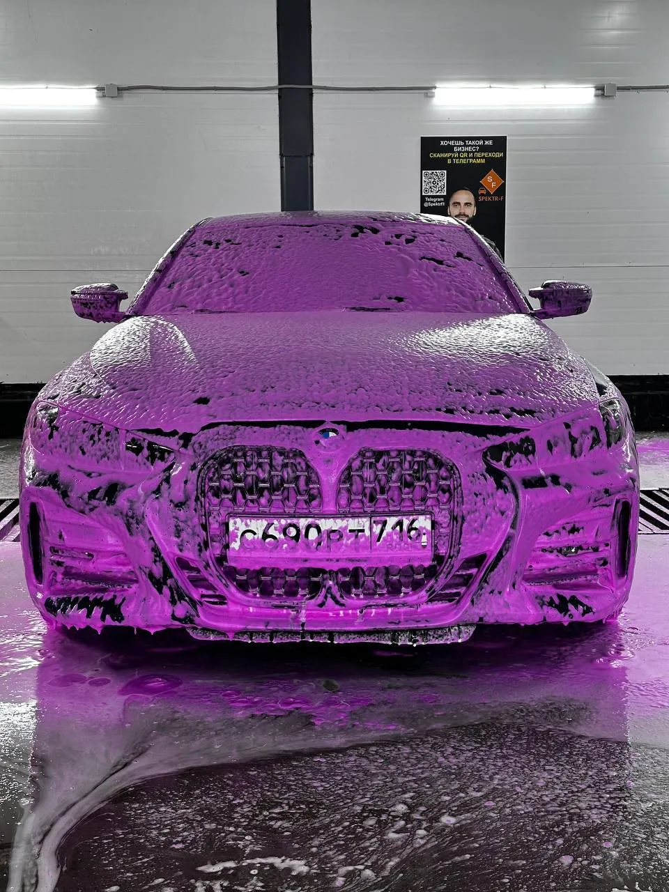 Многие клиенты заезжают на автоматическую мойку впервые просто из интереса, чтобы своими глазами посмотреть, как все работает изнутри. Кроме того, в премиальной комплектации мойки есть очень эффектная опция, когда поступающая из рамы пена подается с LED-подсветкой. Процесс выглядит весьма впечатляюще. Чтобы привлечь внимание, советуем оформить такую робот мойку в витраже и, что называется, «собирать лайки» и прибыль.