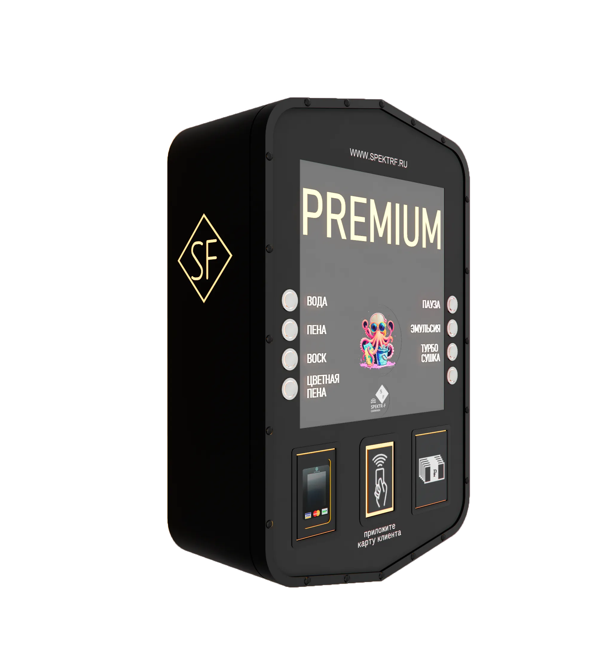 Владелец в курсе всех дел: сколько автомобилей прошло через мойку, какая температура внутри помещения, каков размер прибыли. При этом в случае малейшей неисправности на телефон придет смс-оповещение. Кстати, техобслуживание, ремонт и поставку химии осуществляют специалисты компании СПЕКТР-Ф.